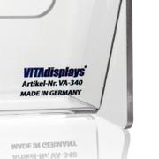 Transparenter Flyerständer aus Marken-Acryl von VITAdisplays® im seltenen DIN A7 Hochformat - handmade - aus hochwertigem, original PLEXIGLAS® XT. Dieser formschöne Flyerhalter, exklusiv bei uns erhältlich, wurde im Besonderen für moderne A7 Event-Flyer und Location-Cards entwickelt und besticht durch ein klassisches Design und eine hochwertige Verarbeitung. Das hochglänzende Marken-Acrylglas wurde an den Kanten matt gefräst und bringt somit die Konturen dieses hochwertigen Flyerständers bei entsprechender Beleuchtung zum Strahlen. Dieser transparente Flyerständer eignet sich hervorragend als Werbemittel und individualisierter Aktionsartikel für eine Bedruckung im High-End 5C Digitaldruck z. B. mit Ihrem Logo, Slogan oder Firmennamen. Die bedruckbare Fläche auf der Vorderseite beträgt 70 x 20 mm. Flyerständer und Prospektständer mit Druck direkt vom Hersteller.