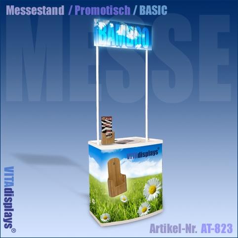 Dieser Messestand mit TOP-Schild aus unserer BASIC-Serie eignet sich ideal für den mobilen und schnellen Einsatz am Point of Sale oder auf Messen und Ausstellungen. Mit wenigen Handgriffen aufgebaut, kann dieser Promotisch für Ihre Promotion-Aktionen zudem noch mit einem individuellen Druck personalisiert werden.Dieser Promo-Counter in robuster Ausführung ist stabil und bietet Dank des EXTRA Regalfachs viel Platz für Ihre Kataloge, Werbegeschenke und Aktionsmaterial. Selbstverständlich wird der Messestand inkl. Transporttasche geliefert. Das optimale Preis-Leistungs-Verhältnis.