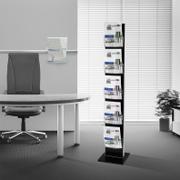 Zu den fünf im Lieferumfang enthaltenen DIN A4 Prospekthaltern können für eine beidseitige Nutzung dieses doppelseitigen, freistehenden und hochwertigen Boden- Prospektständers weitere Prospekthalter in den Formaten DIN A4, A5 und A6 oder individuelle Drucke dazu bestellt werden.
