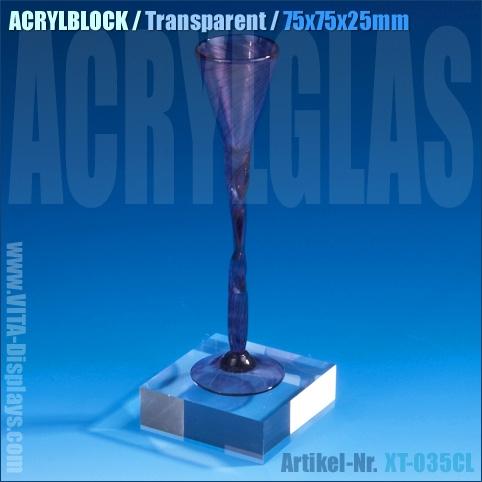 Massiver Acrylblock (7, 5 x 7, 5 x 2, 5 cm) aus hochwertigem und transparentem Acrylglas mit diamantpolierten Kanten für die Präsentation von z. B. Schmuck oder Kunstgegenständen im Schaufenster oder im Theken- und Tresenverkauf. Optimal zur Verkaufsförderung als Schmuck-Display und Schmuckständer, wie z. B. Ringständer oder als Präsentationshilfe für kleinere Exponate geeignet. In unserem Shop finden Sie weiteren Juwelierbedarf, wie Acryl- und Schmuck-Displays als Präsentations- und Verkaufshilfen zur Verkaufsförderung in verschiedenen Grössen und diversen Formen und Abmessungen.