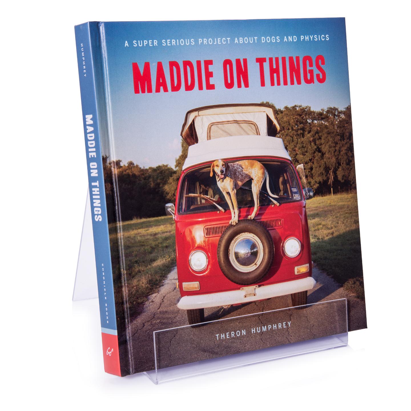 Bei dem präsentierten Buch „Maddie On Things“ handelt es sich um einen faszinierenden Bildband und die Geschichte der Hündin Maddie, dokumentiert von Ihrem Weggefährten Theron Humphrey, erschienen im Abrams & Chronicle Books Verlag (ISBN-13 978-1452115566) http://www. thiswildidea. com/