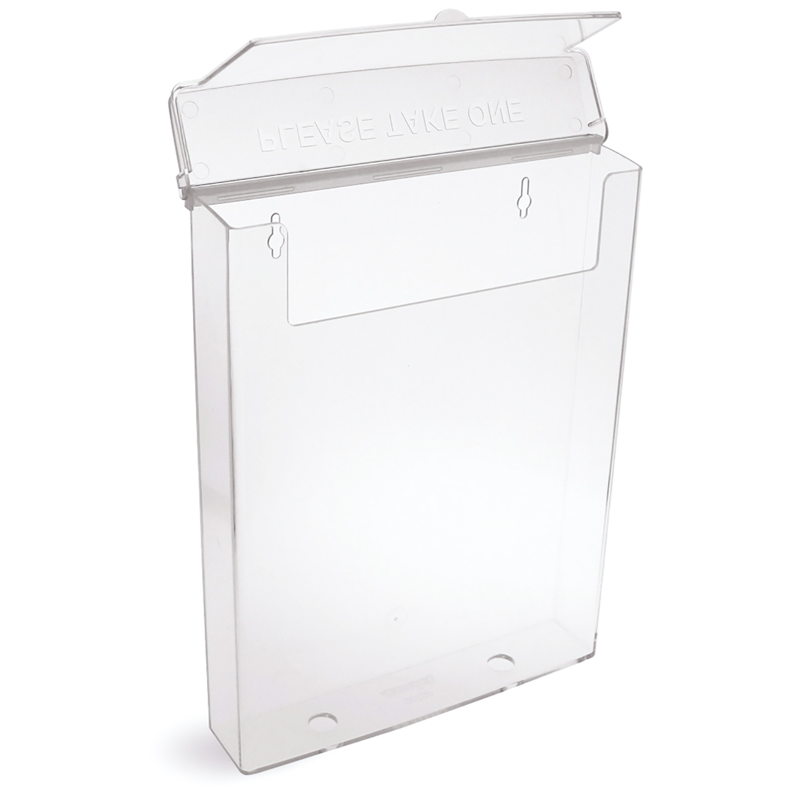Prospekthalter mit Deckel für DL, A5, A4 – robust, klar, outdoor‑tauglich.