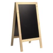 Stable trestle stand made of real wood with natural lacquer finish and two chalkboards