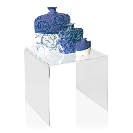 With one click, you acquire a U-stand 25 x 25 cm (decorative angle) made of high-quality 4mm acrylic glass of the PLEXIGLAS® brand with diamond-polished edges, ideally suited for the placement of your exhibits and goods in counter and counter sales, in the shop window or in the display case. This goods carrier impresses with its high-quality workmanship. The U-bridge is also available in other sizes, colours, various shapes and dimensions.
